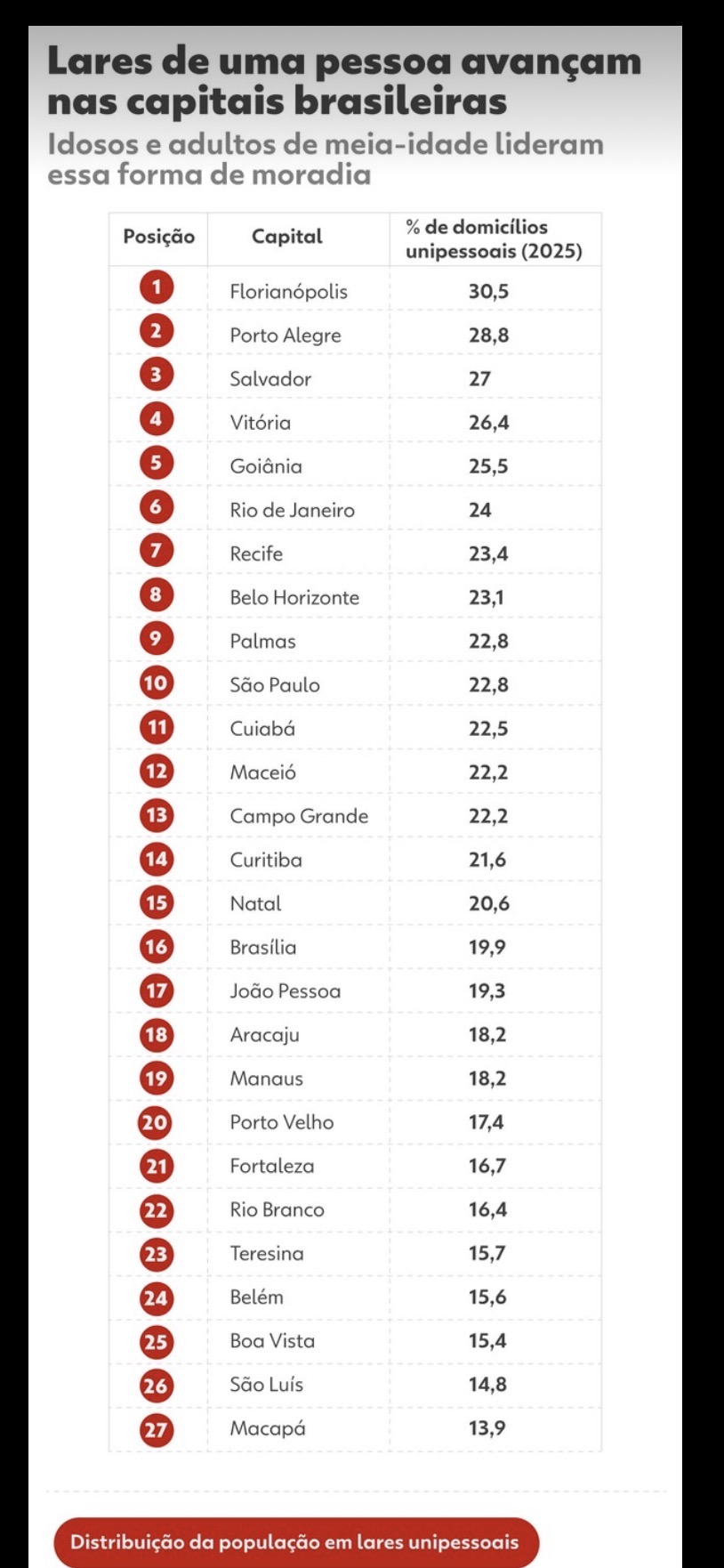 O levantamento também mostra que o crescimento populacional não foi uniforme entre as capitais brasileiras. Enquanto algumas cidades registraram expansão significativa, outras tiveram redução no número de habitantes, como Salvador, Porto Alegre e Natal.