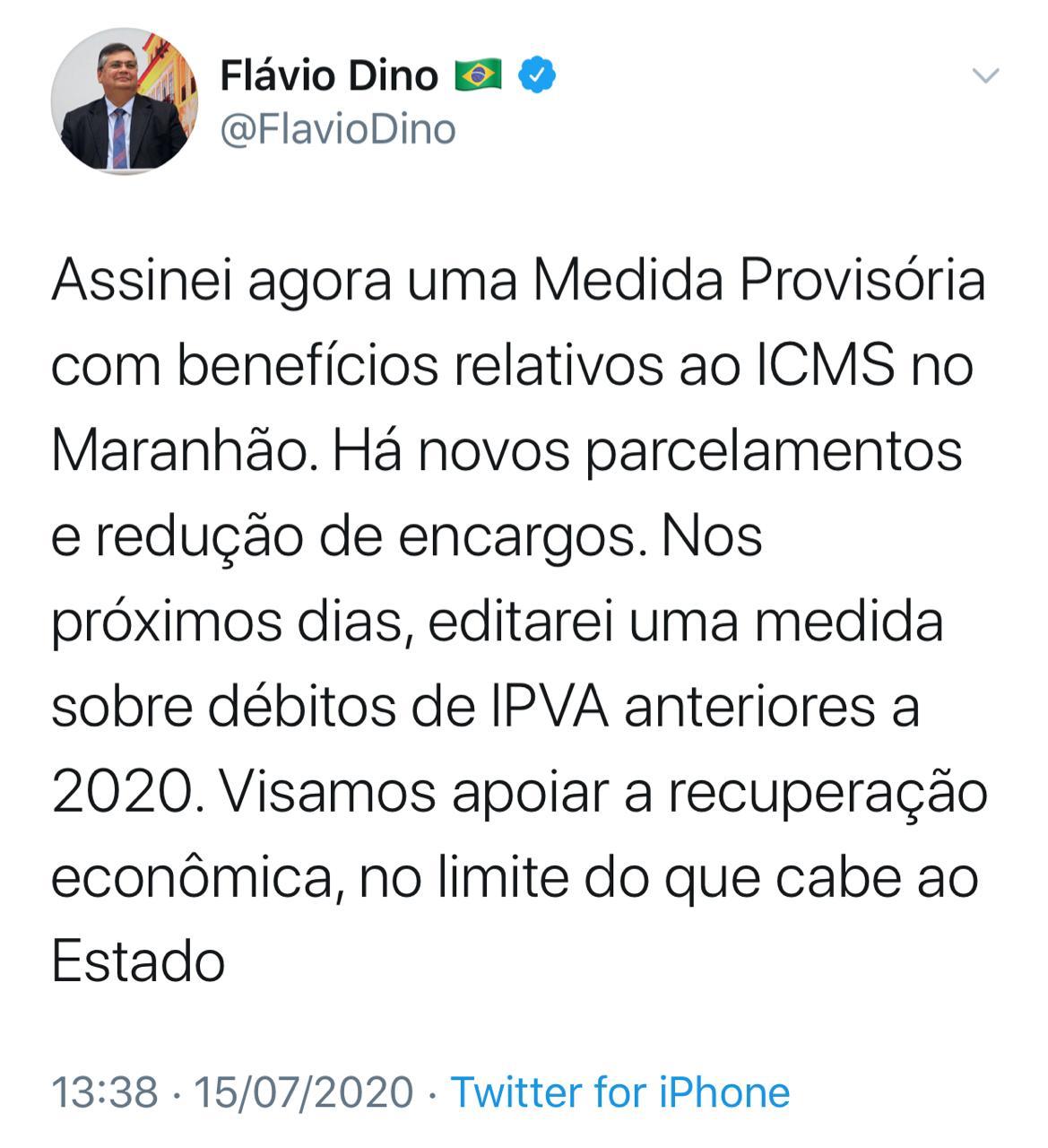 Por meio da Medida Provisória 321/2020 foi instituído o Programa Especial de Pagamento e Parcelamento de débitos fiscais de ICMS e ICM, com redução de multa e juros para pagamentos à vista ou parcelado, pelo governador do Maranhão, Flávio Dino.