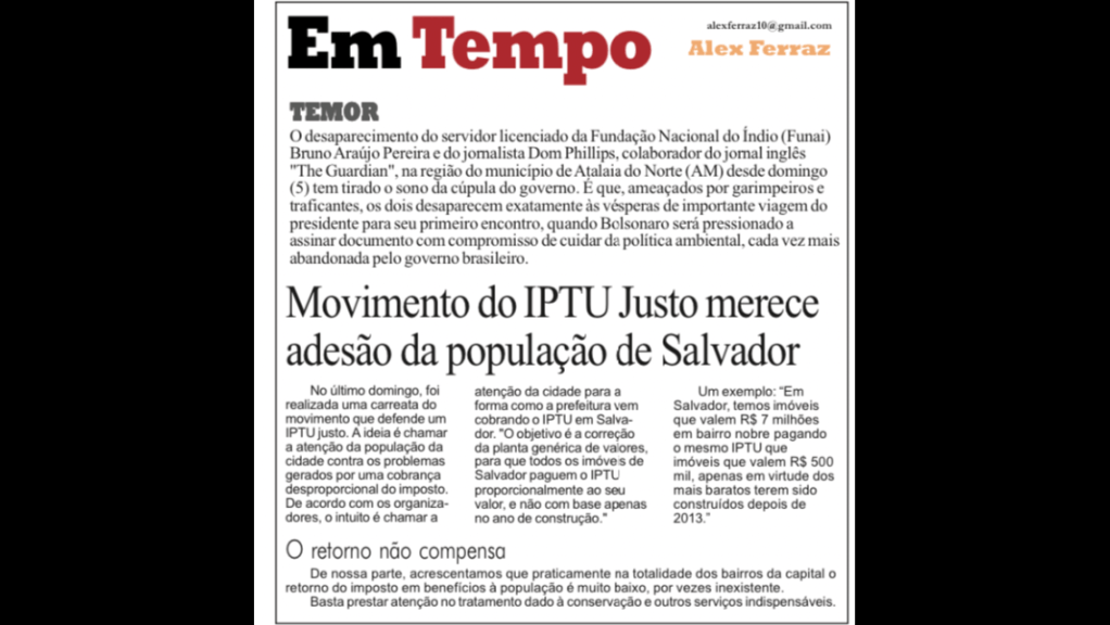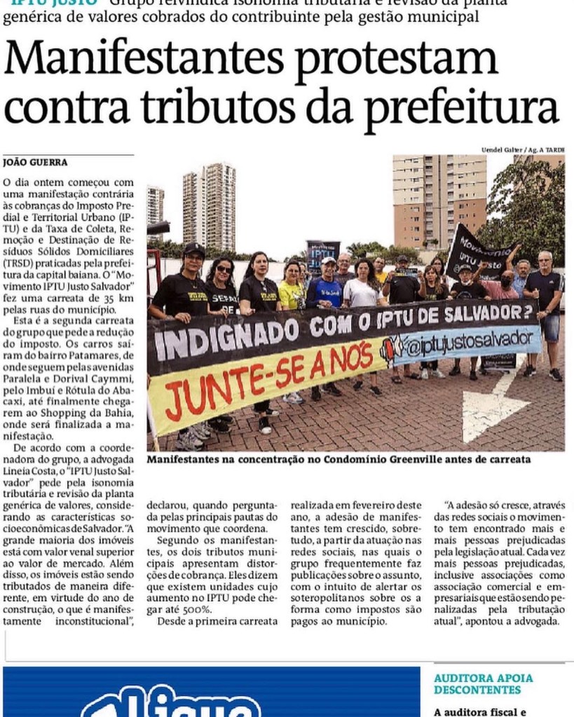 Amanhã o IPTU JUSTO estará na tribuna da Câmara Municipal de Salvador