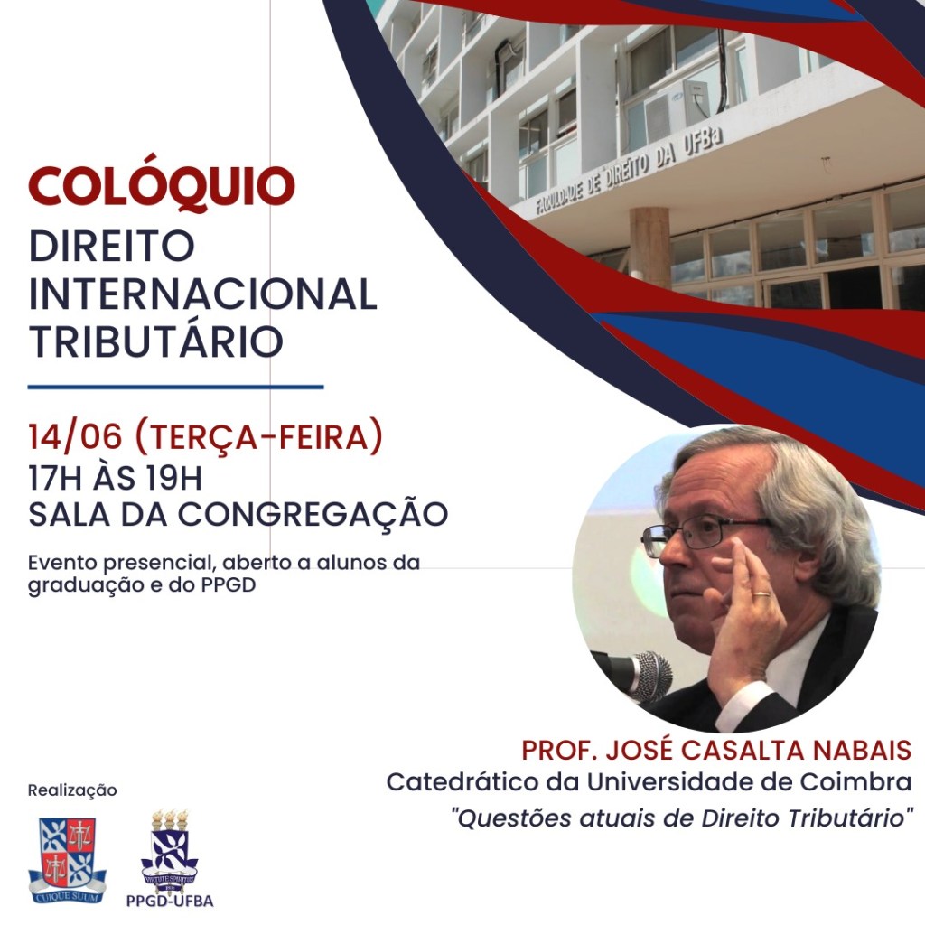 Amanhã um dos maiores catedráticos da Europa, professor José Nabais da Universidade de Coimbra participará na Faculdade de Direito da UFBA de um colóquio internacional de Direito Tributario às 17h. Vocês são todos convidados. A entrada é franca e a oportunidade é única.