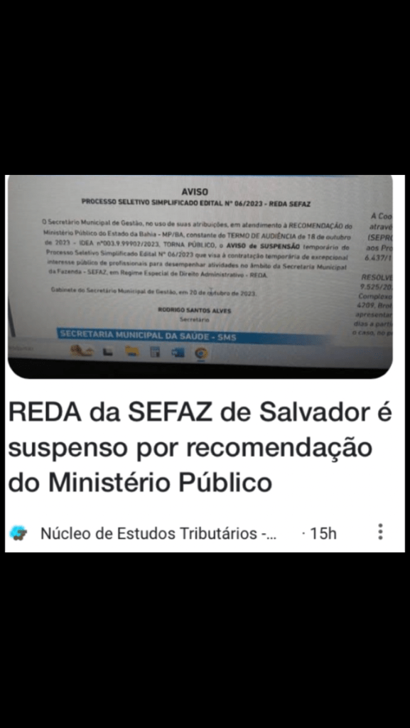 A publicação da notícia pelo Núcleo de Estudos Tributários – NET da suspensão do REDA da Secretaria Municipal da Fazenda – SEFAZ da Prefeitura de Salvador registrada no Diário Oficial do Município de Salvador último sábado, 21/10/23, foi uma das reportagens mais lidas desde o dia ontem e aparece no trends do google.