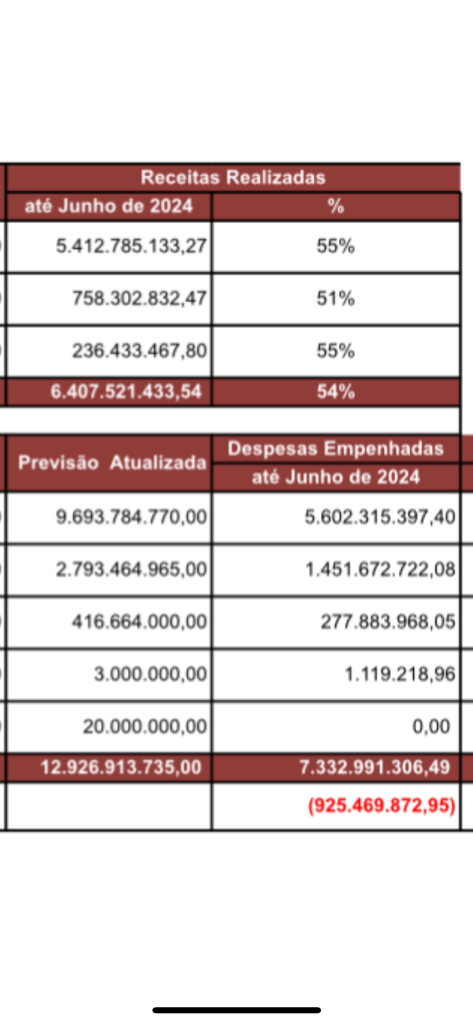 As contas da Prefeitura de Salvador continuam deficitárias no exercício de 2024, mesmo quadro ocorrido em 2023, só que agora o rombo é maior, está perto de um bilhão de reais, referente ao período de janeiro a junho desse ano. Talvez essa situação crítica justifique o bloqueio no orçamento de quase dois bilhões e meio de reais.