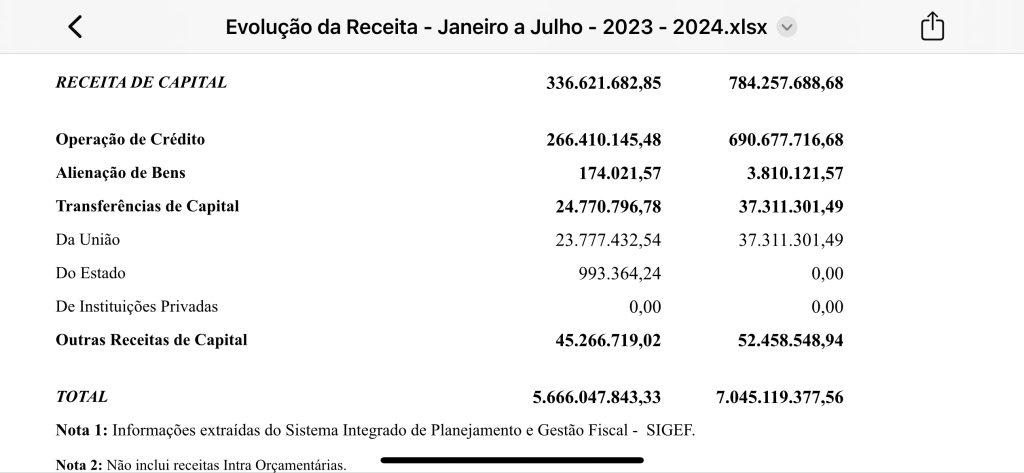 O montante das operações de crédito realizadas pela Prefeitura de Salvador de janeiro a julho de 2024 totaliza R$ 690.677.716,68, volume quase três vezes maior do que os empréstimos tomados no mesmo período em 2023 que representaram R$ 266.410.145,48. No quesito venda de áreas públicas desafetadas nesses sete primeiros meses do ano Salvador apresentou um incremento vinte e duas vezes maior do que em 2023. Em 2023 arrecadou no período com alienação dos imóveis da cidade R$ 174.021,57. Já em 2024, R$ 3.810.121,57.