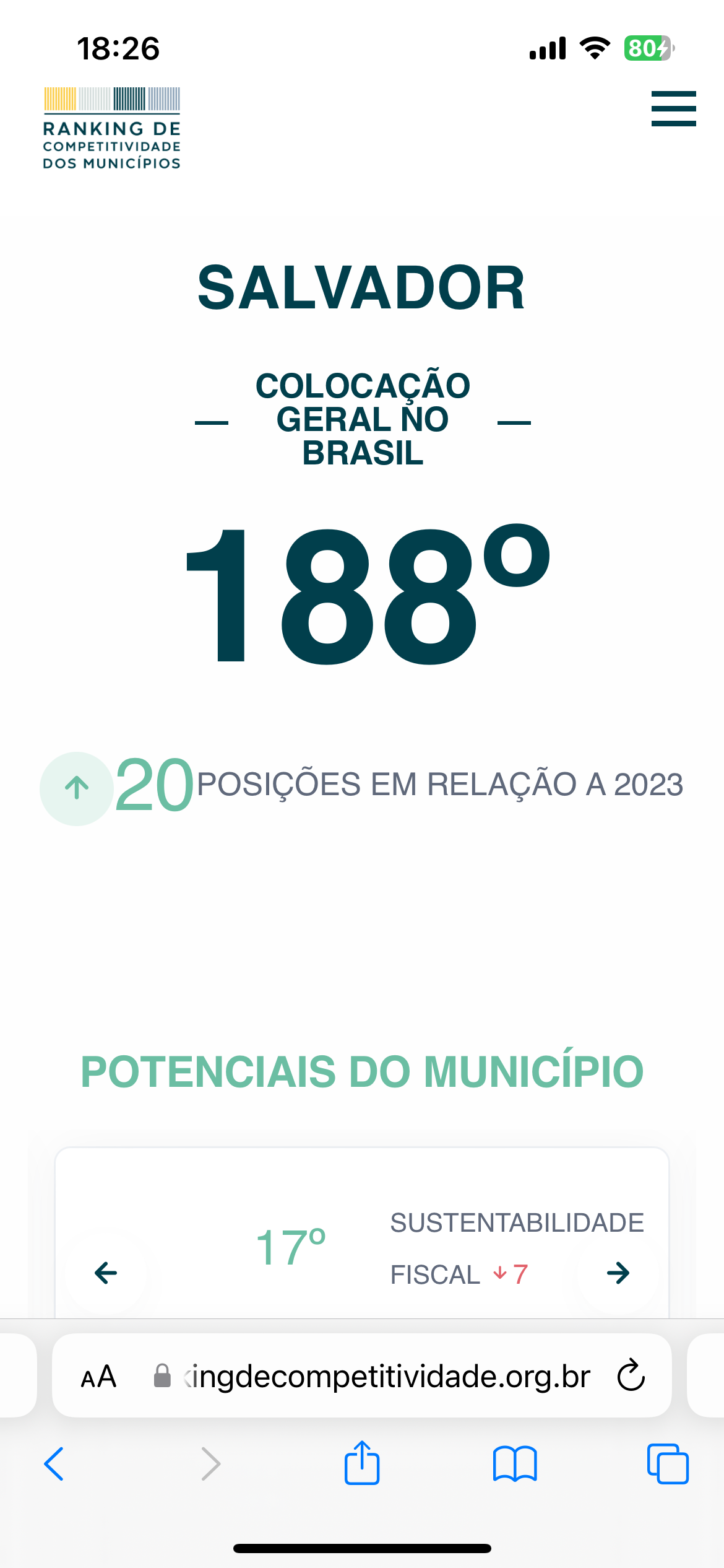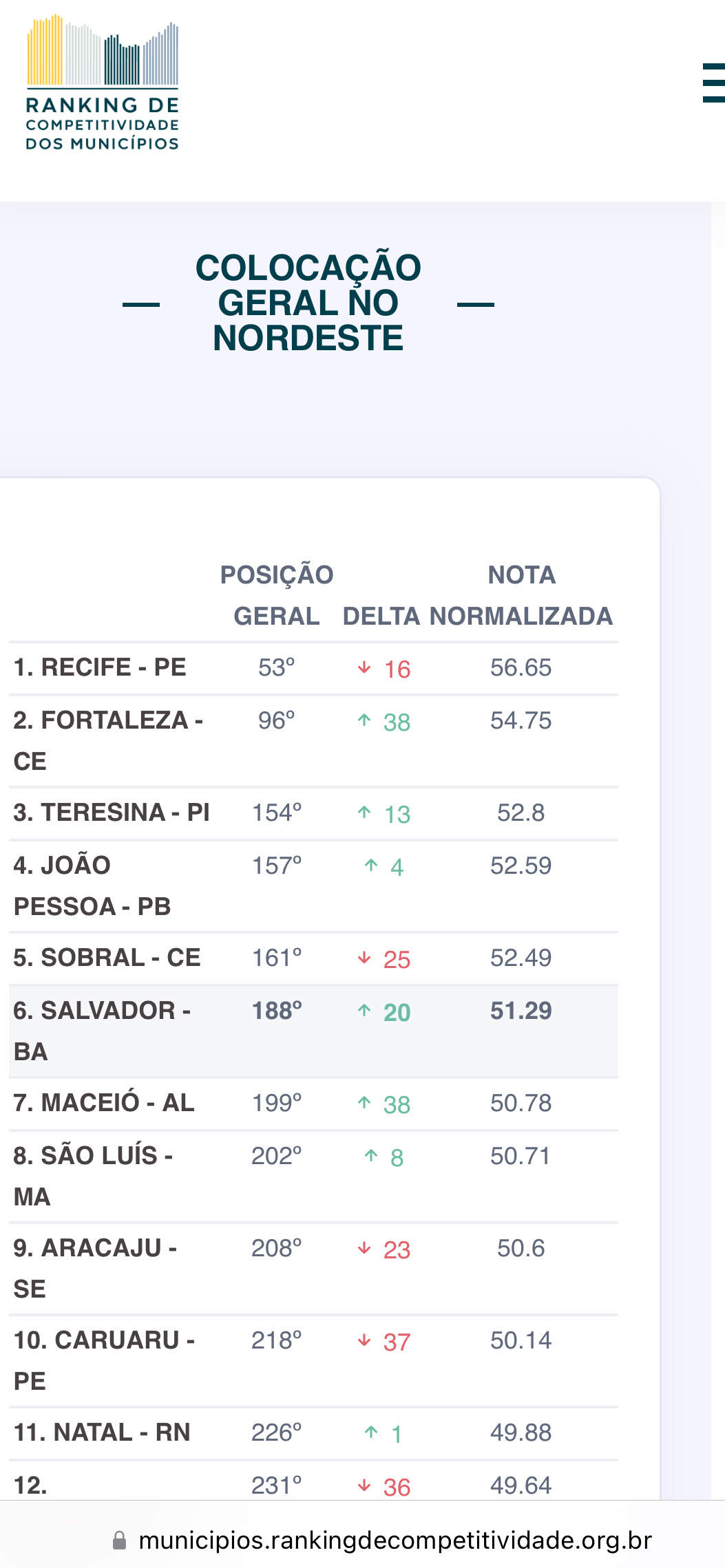 Fonte: https://municipios.rankingdecompetitividade.org.br/BA/salvador/Geral/ranking-geral