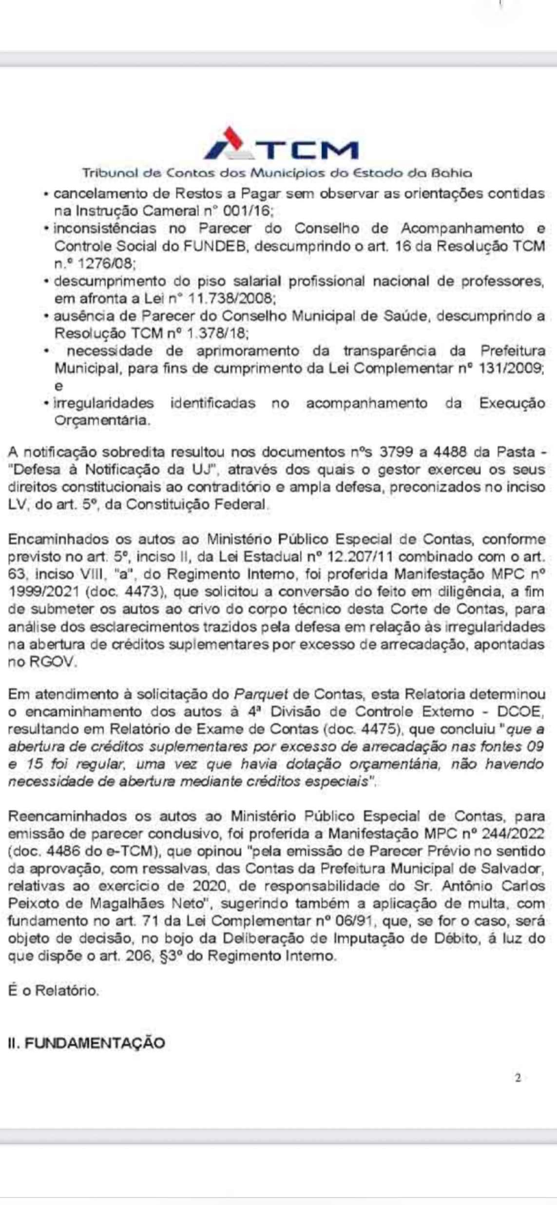 Fonte: https://www.tcm.ba.gov.br/tcm-recomenda-aprovacao-das-contas-de-2020-da-prefeitura-de-salvador/