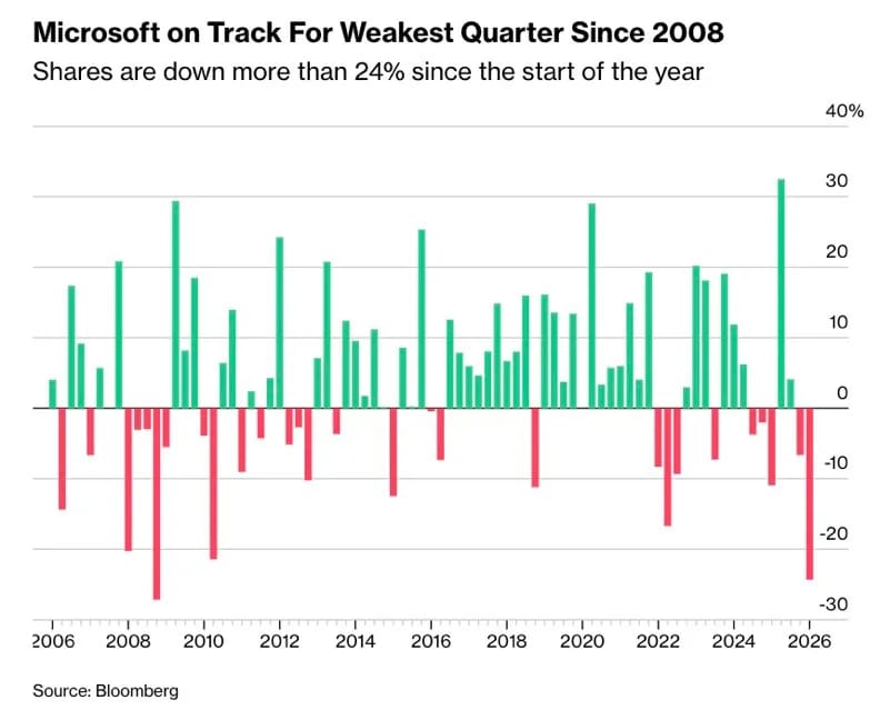 | Na prática, isso indica que o mercado está mais cauteloso com o futuro da BIG TECH, principalmente, também, pelo receio de que OpenAI e Anthropic possam criar agentes capazes de substituir produtos desenvolvidos pela Microsoft. |